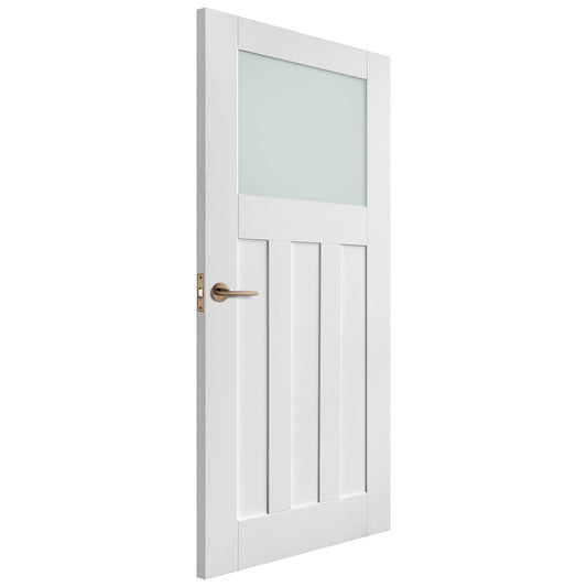 White Internal Primed 1930's DX 3 Panel 1 Light Obscure Glass Made-to-Measure Door (120492)