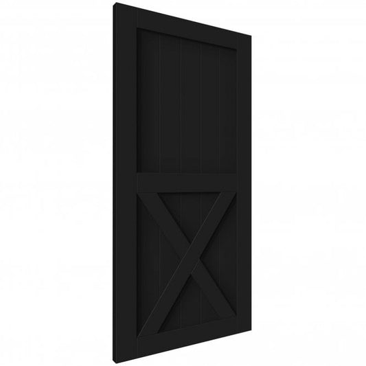 Black Internal Primed 1 Panel X Brace Sliding Barn Door - Black Face Mounted