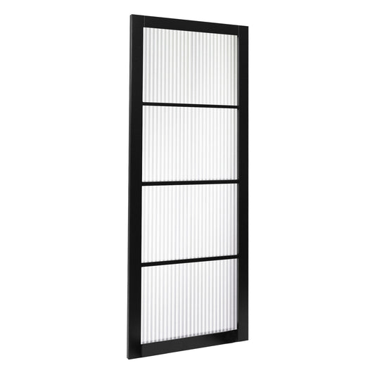 Jet Black Internal Fully Finished 4 Light Reeded Glass Industrial Studio Door (STUBL4LREED)