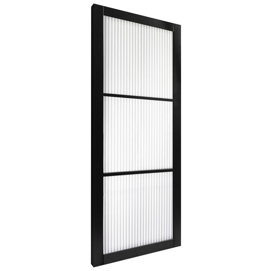 Jet Black Internal Fully Finished 3 Light Reeded Glass Industrial Studio Door (STUBL3LREED)