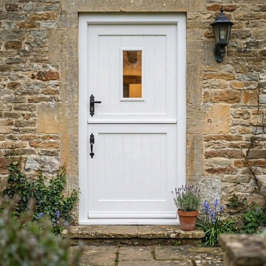 White Painted External Pine 2 Panel 1 Light Clear Glass Stable Door
