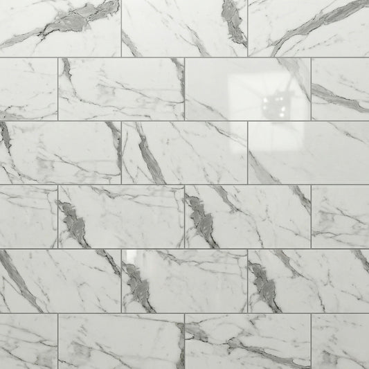 Your price: Regular price £21.79 per m²Your price: Sale price £21.79 per m²Regular price£21.79 per m²£56.44 per packUnit price / perCarrara Marble - Lustre Stone 8mm High Gloss Laminate Flooring
