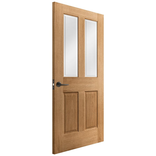 Oak Internal Unfinished Traditional Victorian 2 Panel 2 Light Bevelled Clear Glass Door (51746)