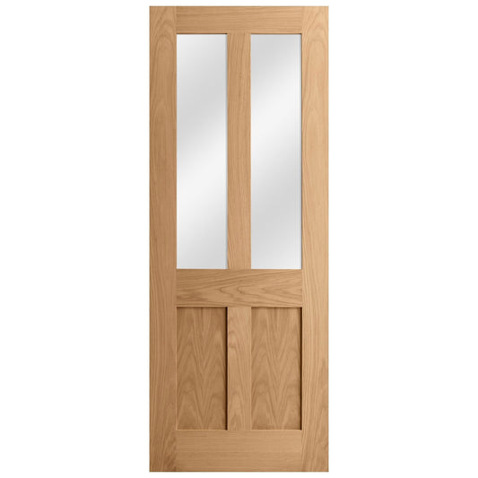 Oak Internal Unfinished Victorian Shaker 2 Panel 2 Light Obscure Glass Made-to-Measure Door (121925)