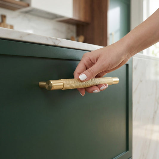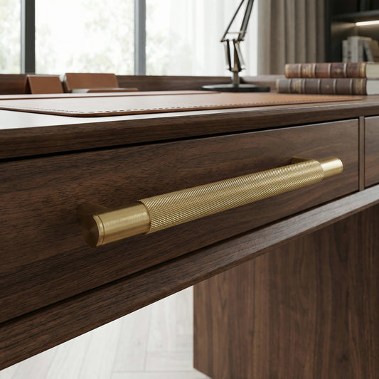 Knurled Medium Round T-Bar Pull Handle - Satin Gold (123412)
