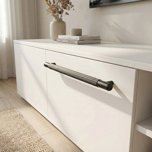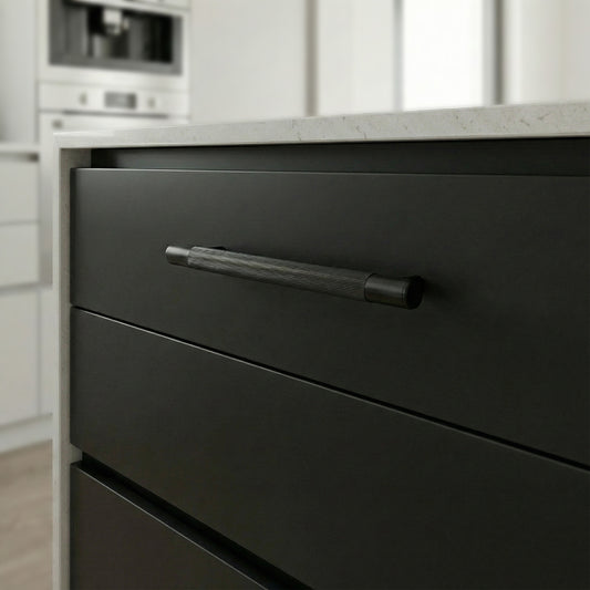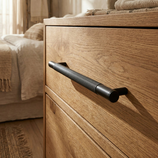 Knurled Medium Round T-Bar Pull Handle - Matt Black (123413)