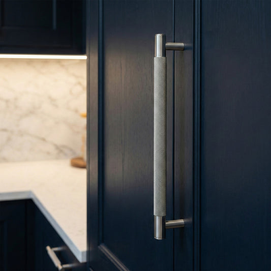 Knurled Medium Round T-Bar Pull Handle - Satin Stainless Steel (123411)