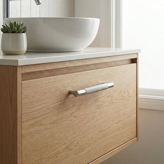 Knurled Small Round T-Bar Pull Handle - Satin Stainless Steel (123406)