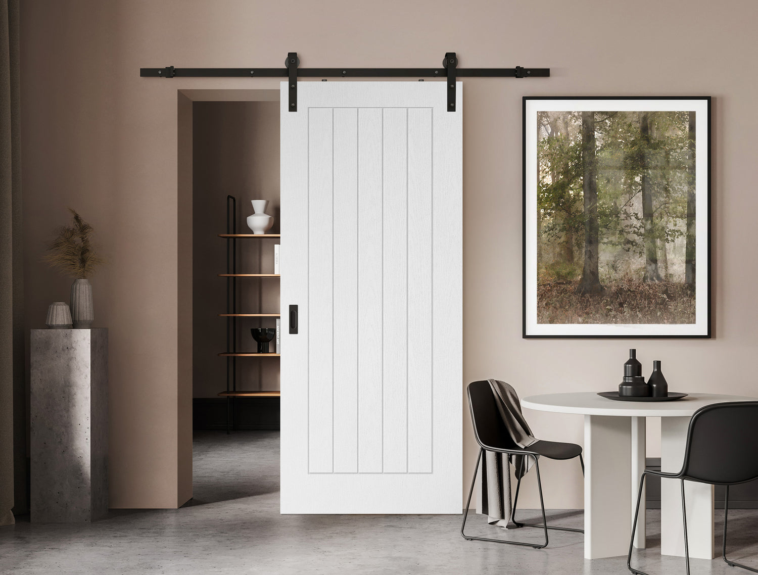 Finish: PrimedWhite Internal Primed Cottage 1 Panel Sliding Door - Black Face Mounted (119986)Price From: Regular price £189.00Price From: Sale price £189.00Regular price£189.00Unit price / per