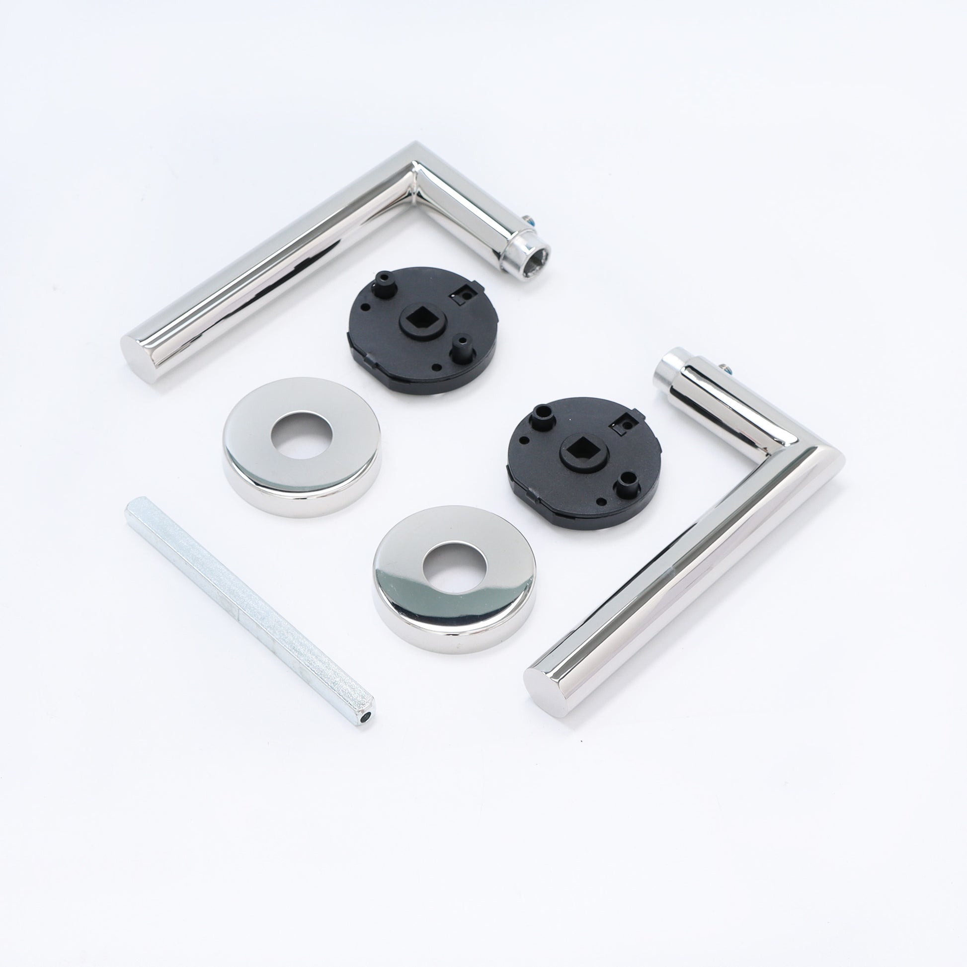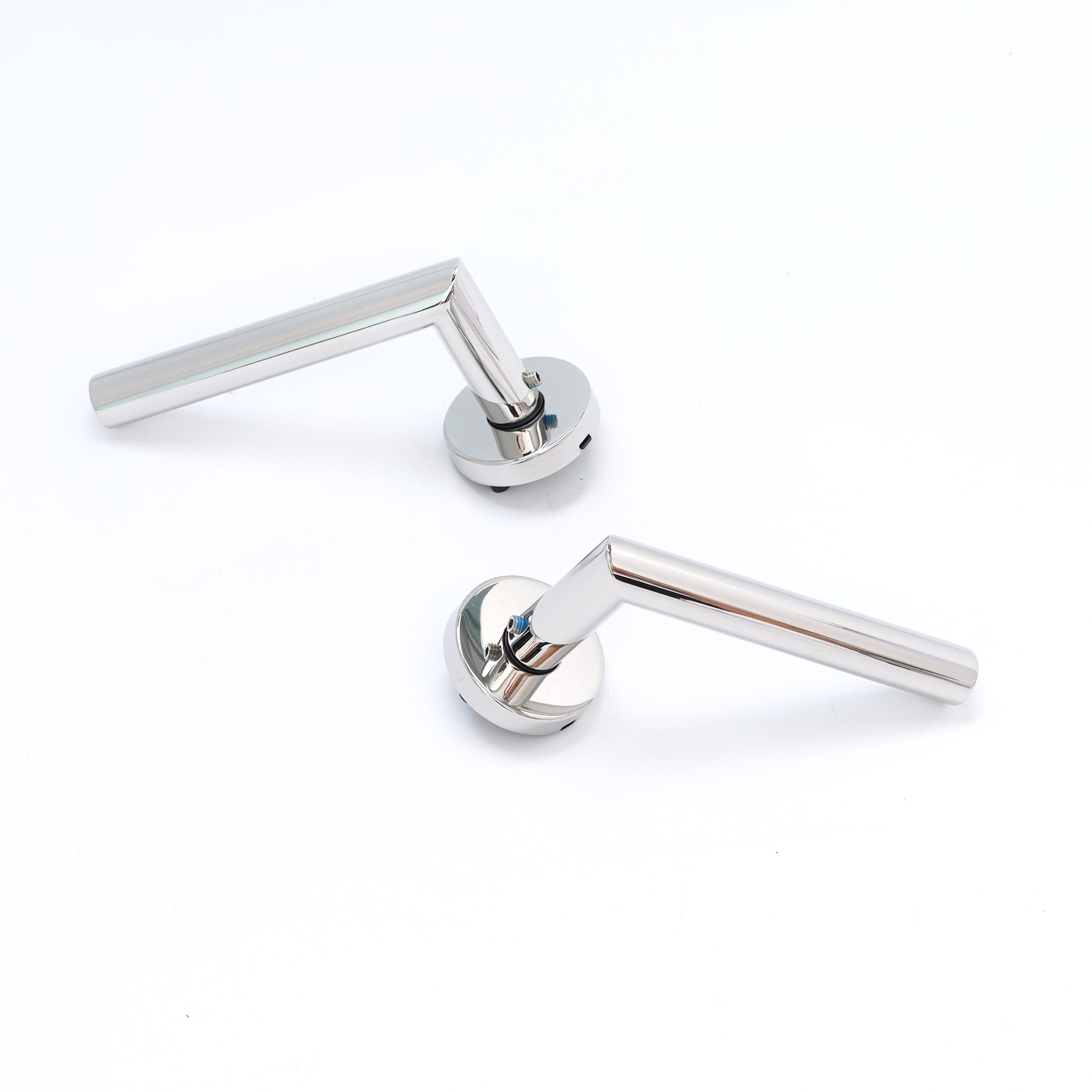 - Polished Chrome Lever Handles on Round Rose: These handles offer a sophisticated, modern look that enhances the overall aesthetic of your doors.