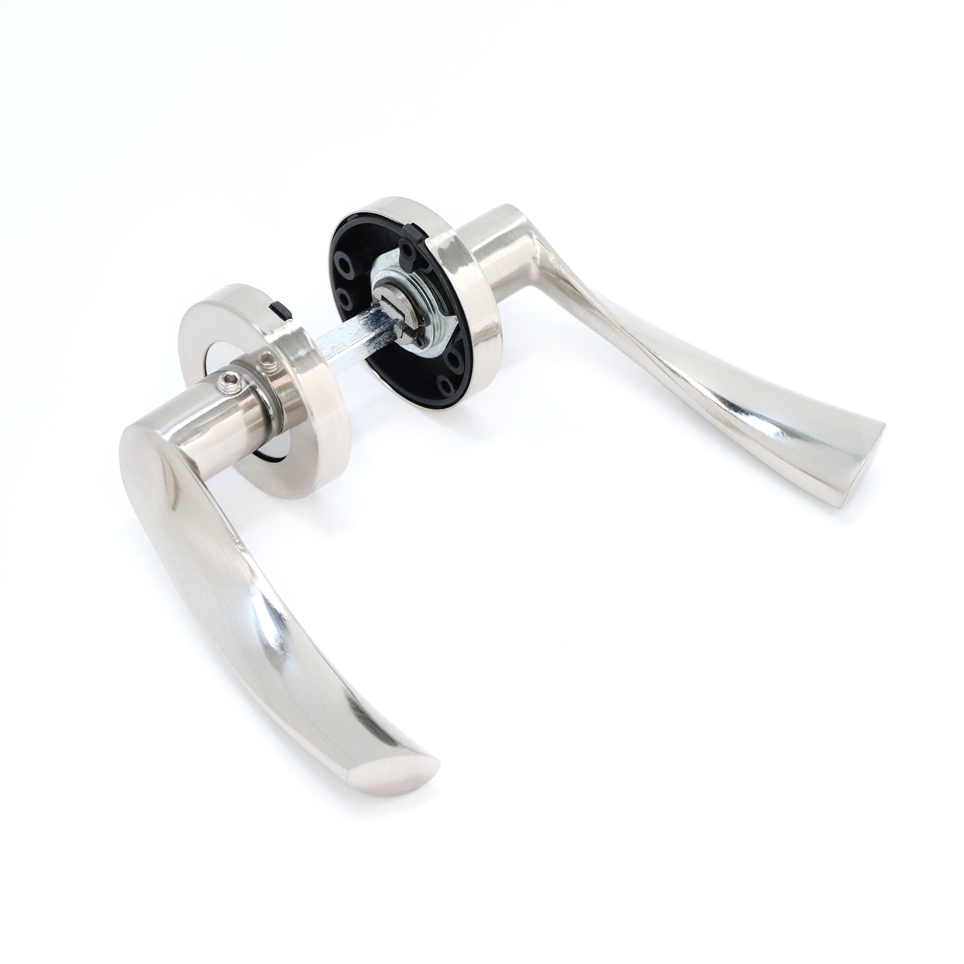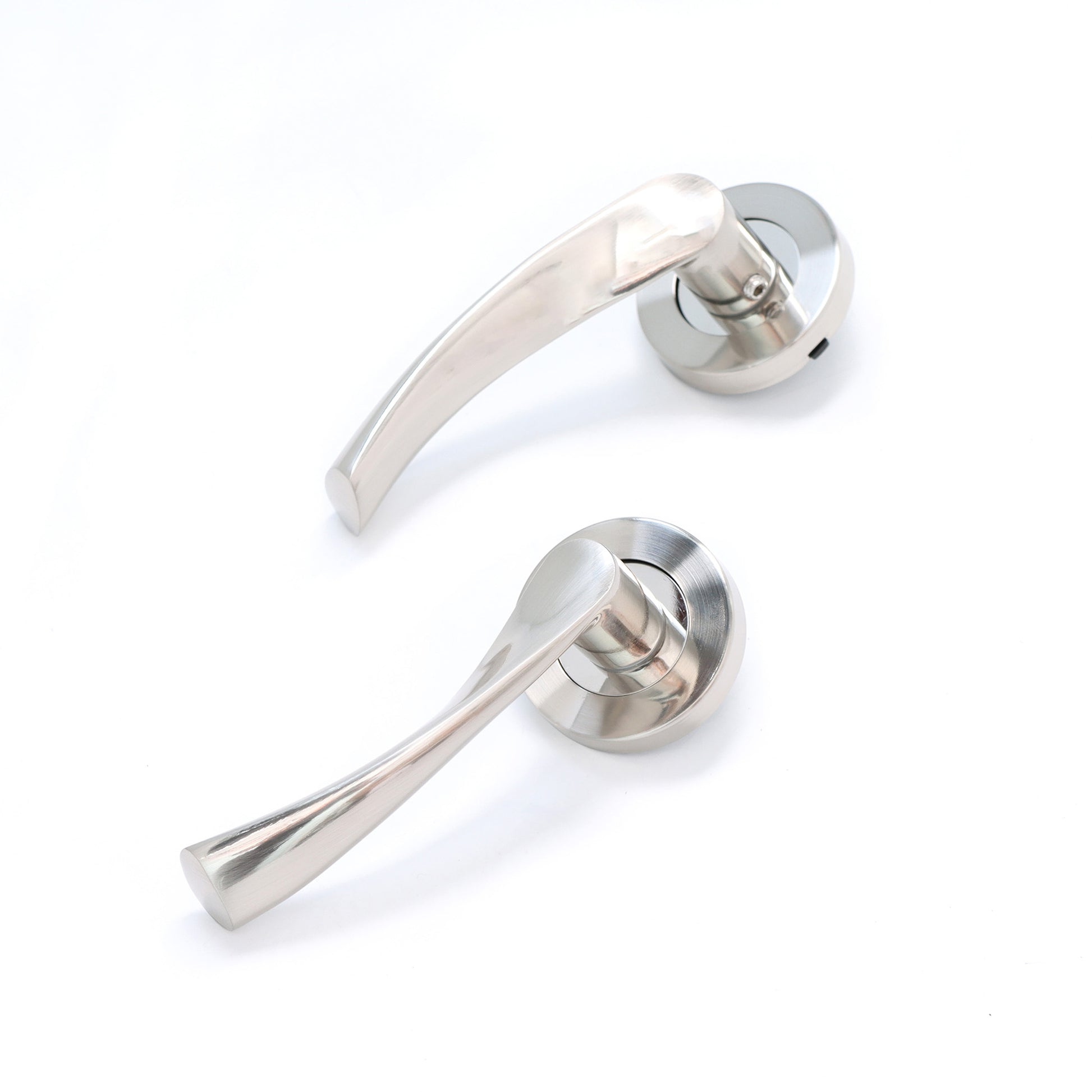 Enhance your doors with the Lifestyle Mizar Lever on Round Rose Handle Set in satin nickel, available at Leader Online. This handle set combines modern design with reliable functionality, featuring lever handles crafted from high-quality aluminium alloy and finished in satin nickel. Perfect for any interior door, it adds a sleek and stylish touch to your home.