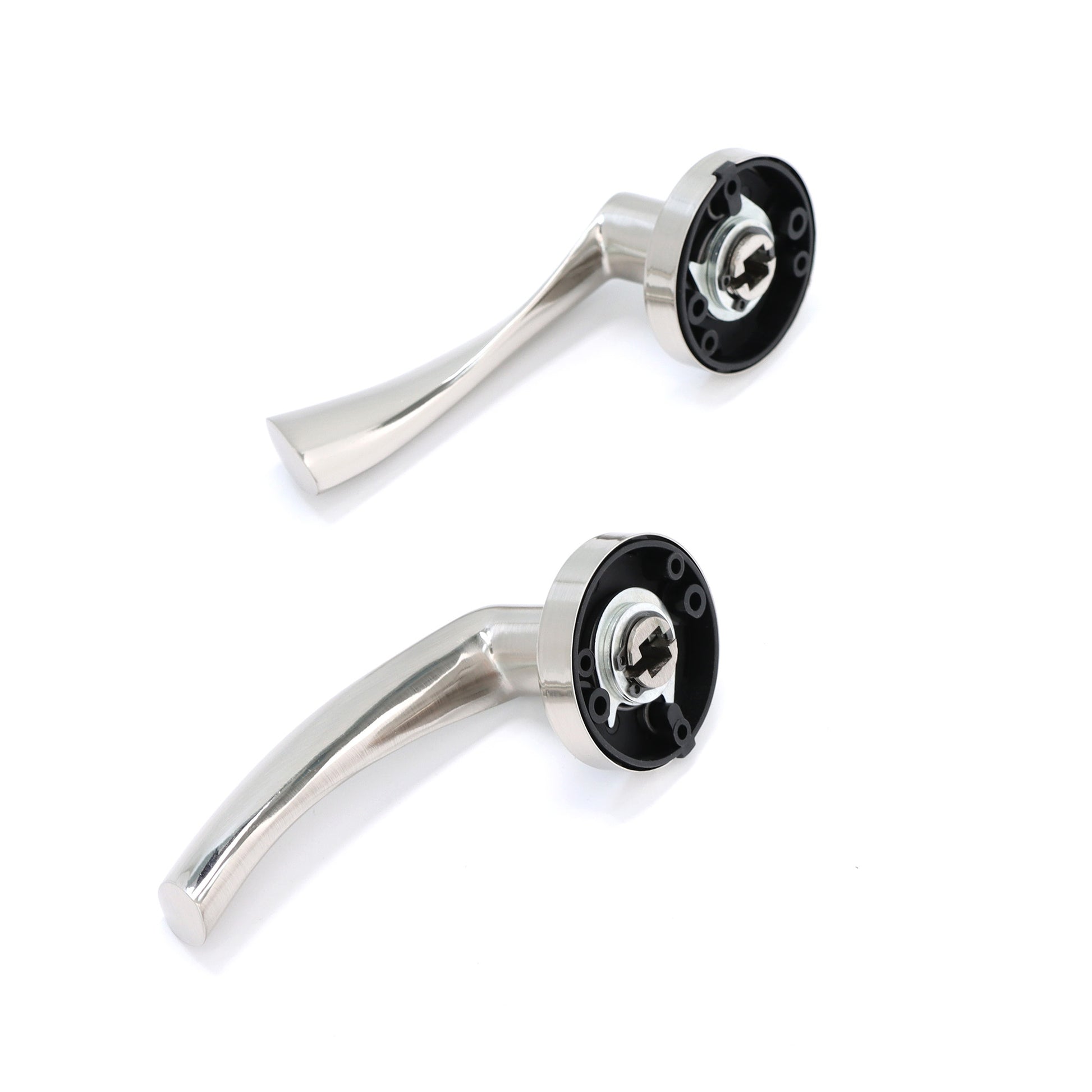 - Satin Nickel Lever Handles on Round Rose: These handles provide a refined, modern look that enhances the overall aesthetic of your doors.