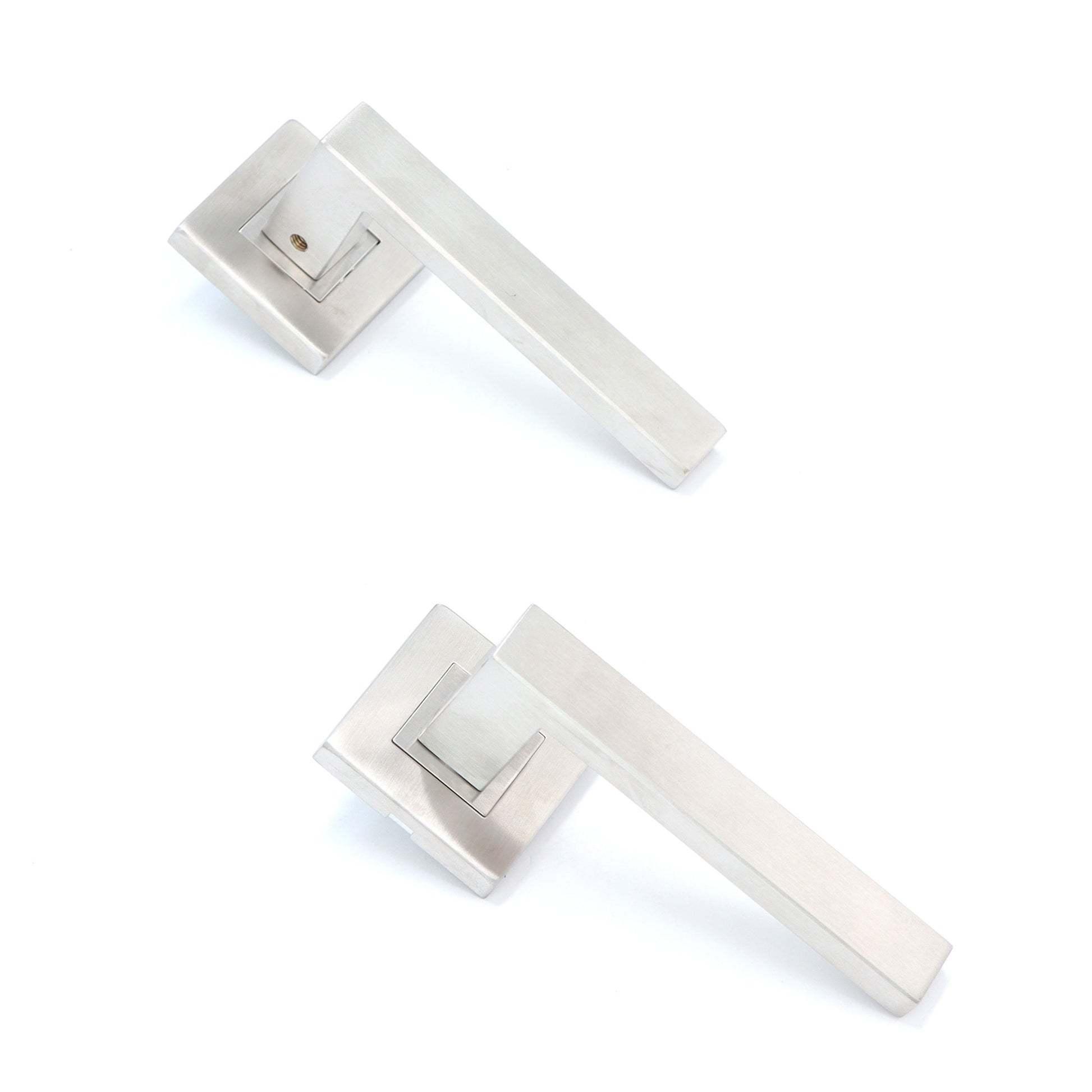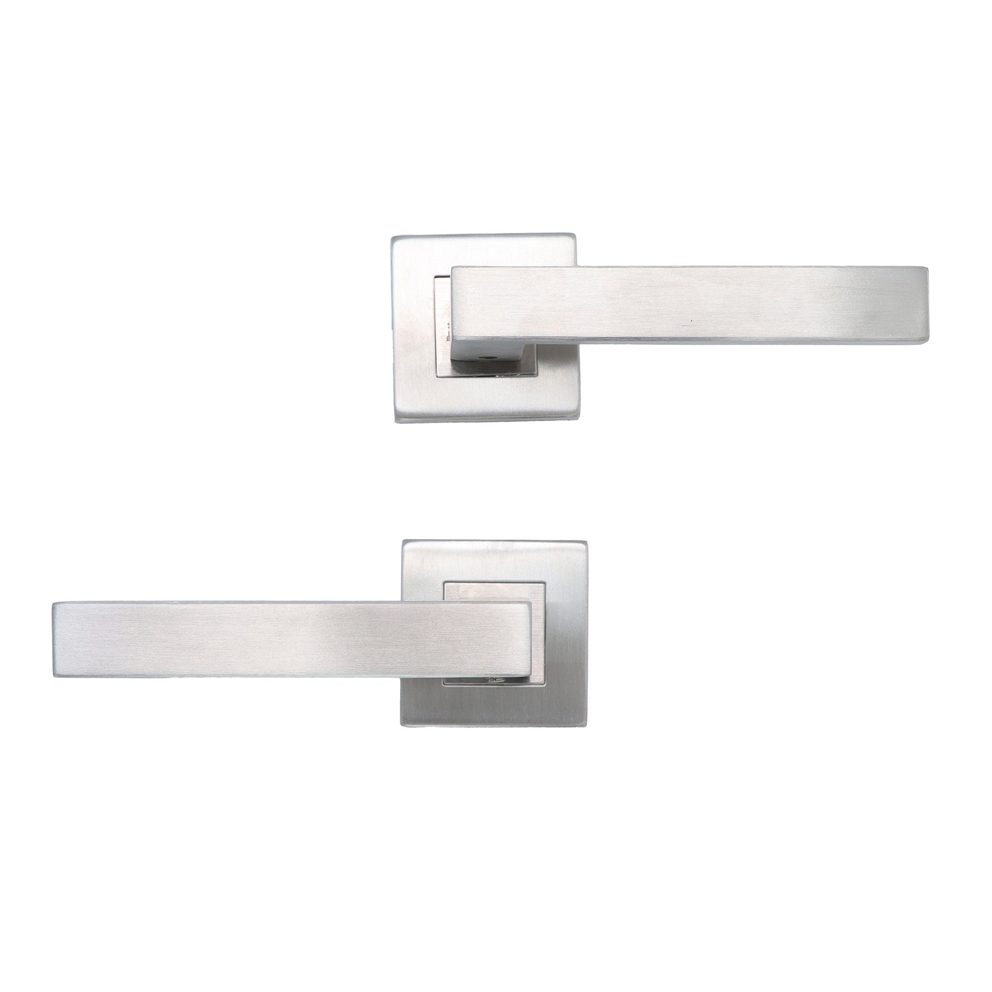 - Satin Stainless Steel Lever Handles on Square Rose: These handles provide a sharp, modern look that enhances the aesthetic of any door, adding a stylish and sophisticated touch to your interiors.