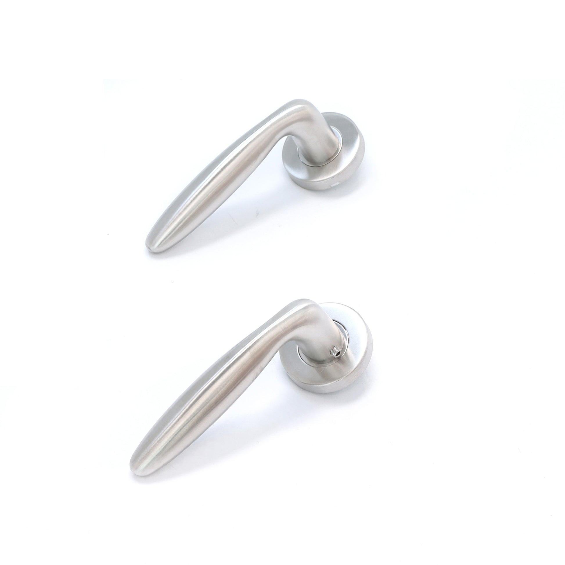 - Satin Stainless Steel Lever Handles on Round Rose: These handles offer a clean, modern look that complements any door, adding a stylish and sophisticated touch to your interiors.