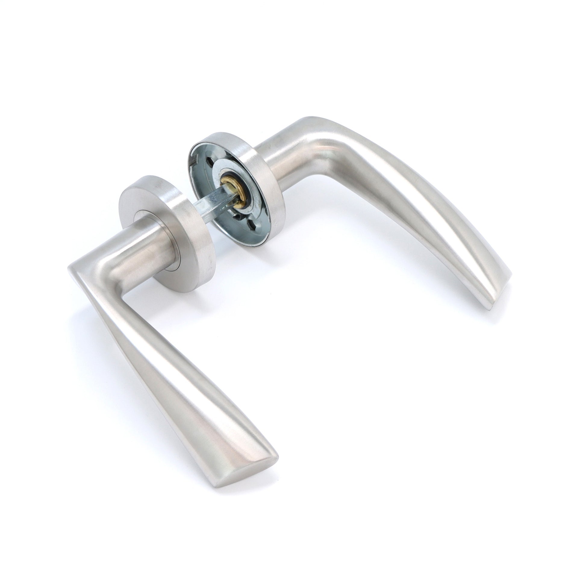 Enhance your doors with the Superior Vega Lever on Round Rose Handle Set in satin stainless steel, available at Leader Online. This set blends modern design with functional reliability, featuring stylish satin stainless steel lever handles on a round rose. Perfect for any interior door, it offers a sleek and contemporary update to your home.