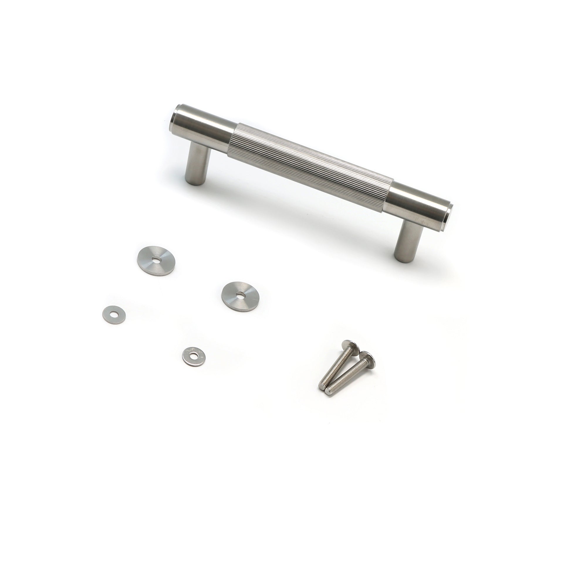 Whether you're upgrading your kitchen cabinets or refreshing your wardrobe doors, the Fluted Small Round T-Bar Pull Handle in Satin Stainless Steel is the ideal choice for a refined and stylish finish.