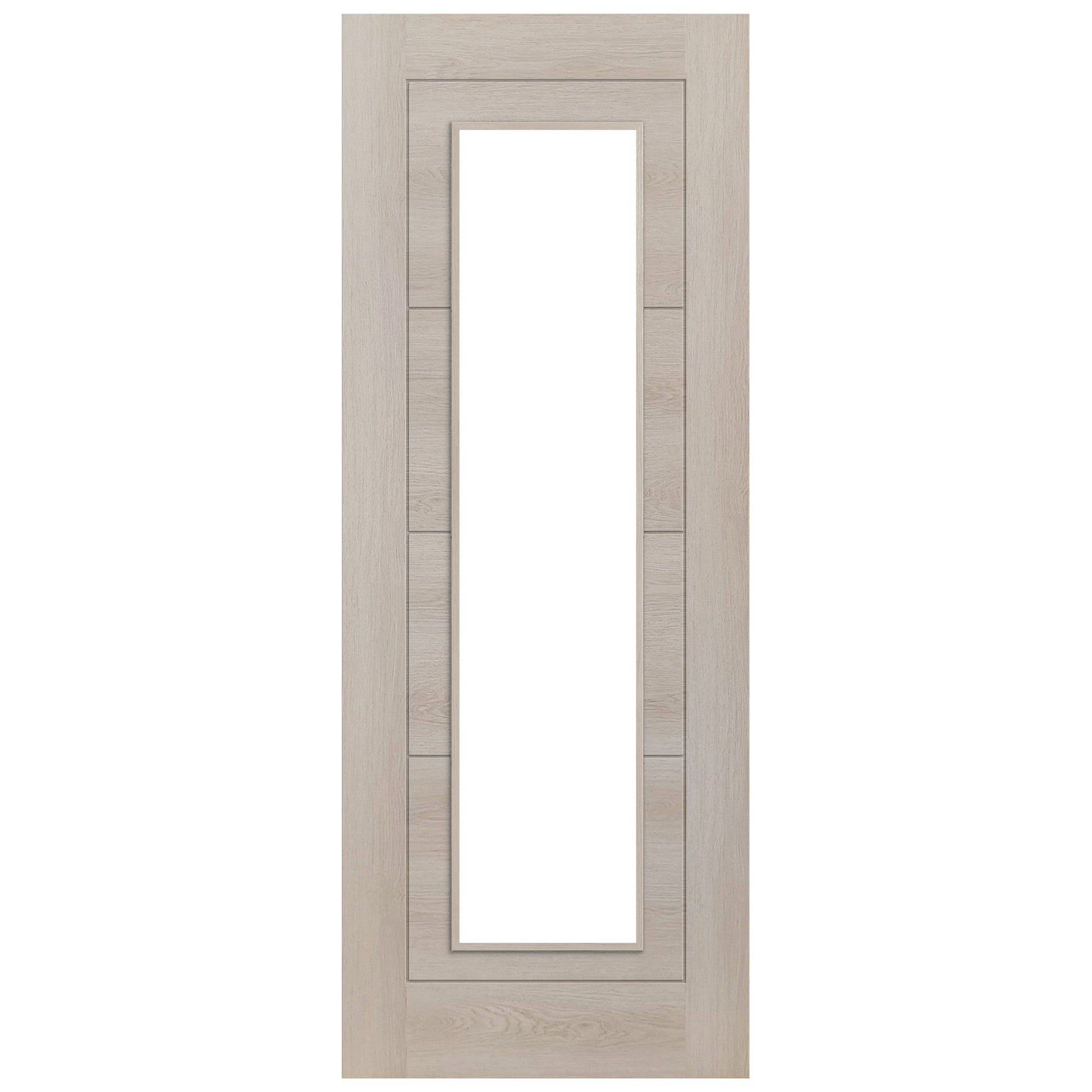 The Ivory Oak Internal Fully Finished Endure Laminate Ladder Clear Glass Door, a perfect embodiment of stylish design and practical functionality. This exquisite door from the Liberty Doors collection integrates the warmth and natural beauty of light Ivory oak with the modern elegance of clear glass, creating a sophisticated addition to any home.