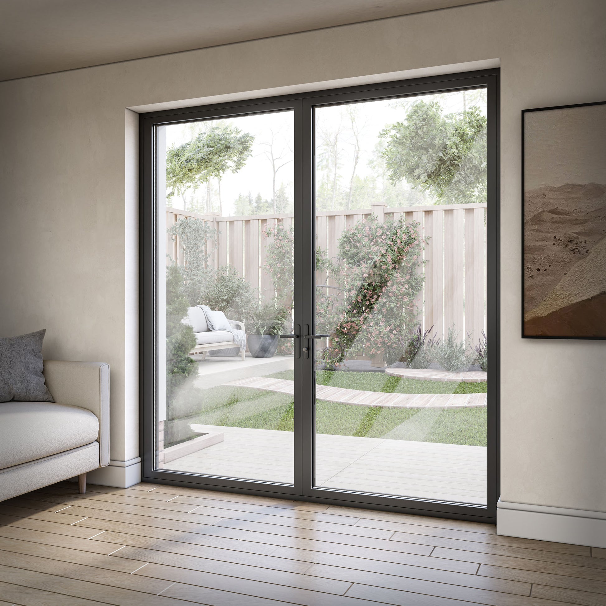 The Matt Black Aluminium External French Patio Door is an excellent choice for those seeking to enhance the aesthetic appeal and functionality of their home with a touch of modern elegance.