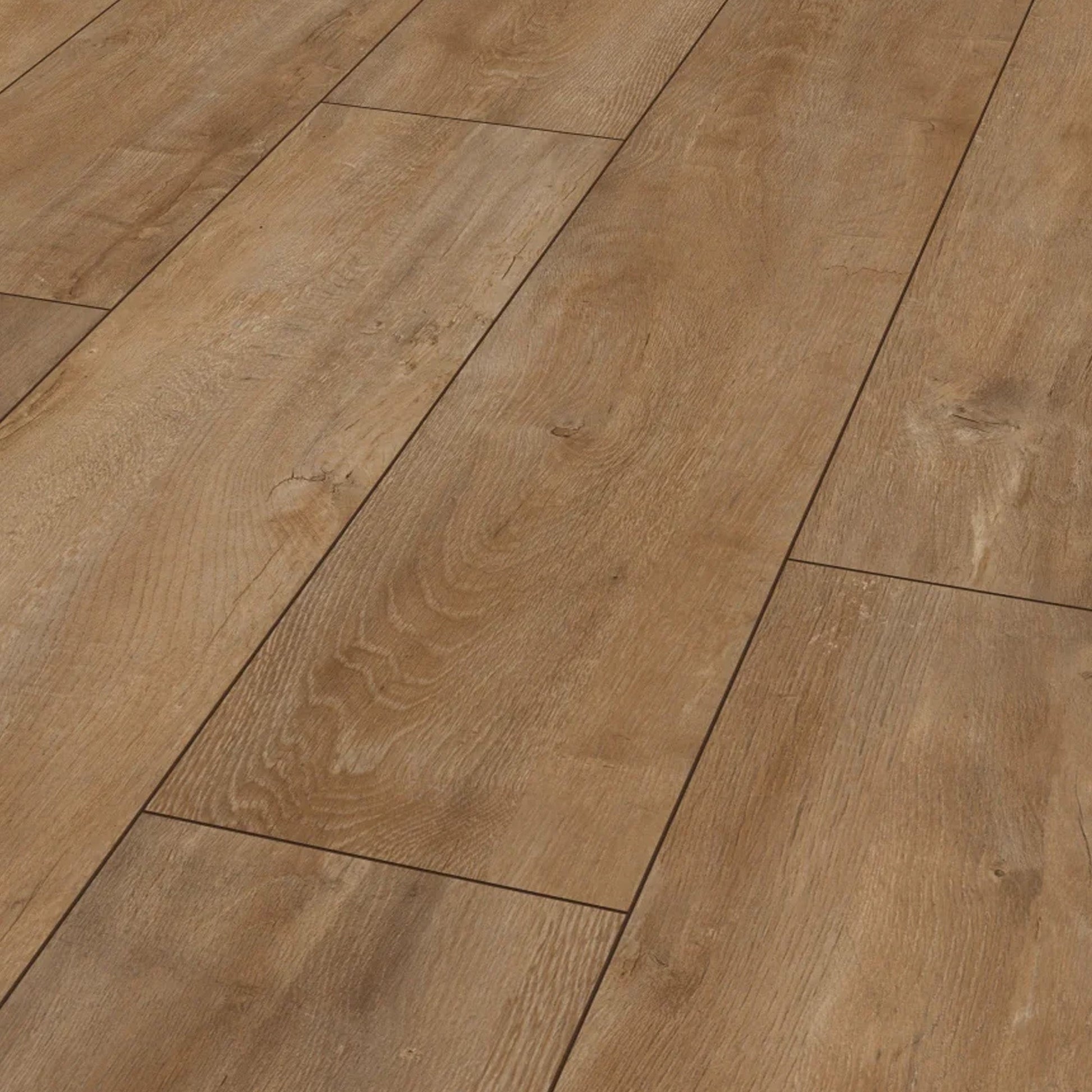 Experience the timeless appeal of oak with the Liberty Floors laminate, showcasing an elegant wood effect that enhances any interior space. The 8mm thickness offers a robust feel underfoot, while its water-resistant design ensures durability when edges and joints are sealed, providing protection for up to 48 hours. The natural oak appearance adds warmth and sophistication, making it a versatile choice for various décor styles. Perfect for busy households, this laminate flooring combines style and practicality seamlessly. Elevate your home with the classic charm of Welsh Oak Nature - 8mm Water-Resistant Laminate Flooring.