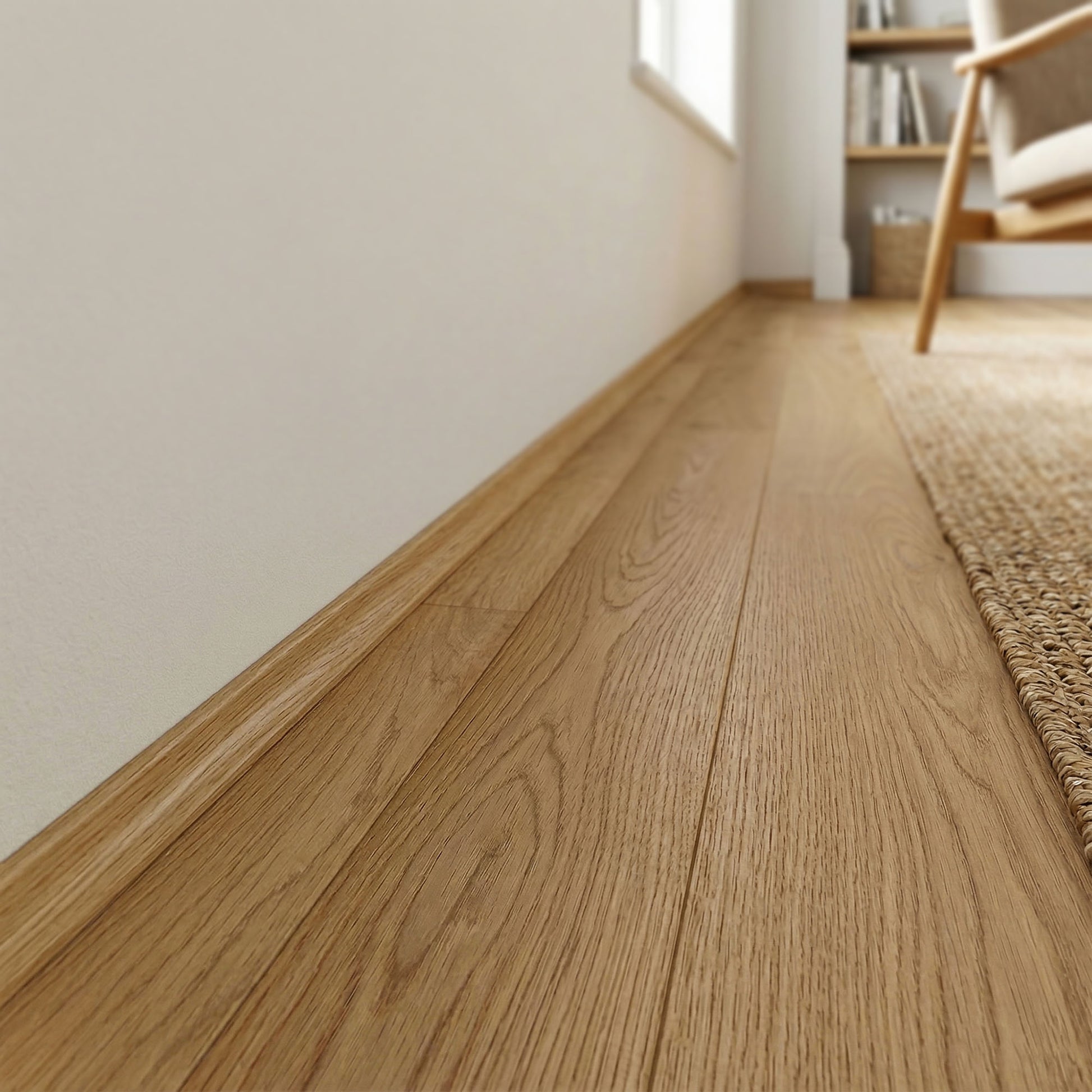 Solid Oak Scotia beading, expertly finished with a natural oiled sheen, offers both durability and a refined aesthetic. Designed for seamless installation, this Leader product enhances any flooring project with its robust material and precise craftsmanship. Measuring 2400mm, it efficiently covers expansion gaps, ensuring a polished look. Ideal for trade professionals seeking quality and efficiency in their projects.
