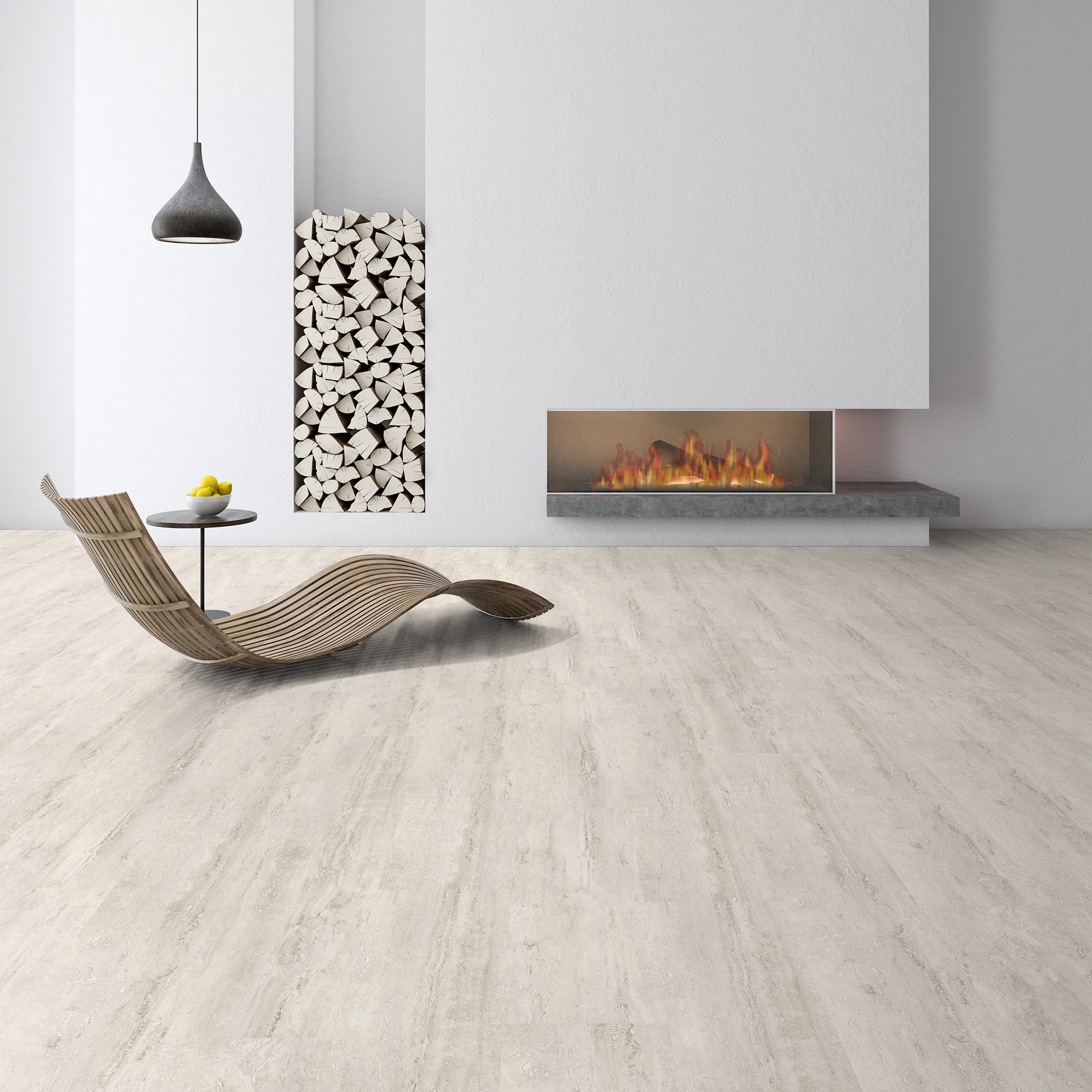 Kaindl's Aqua Pro collection offers a stunning marble effect with the Travertin Arezzo - Aqua Pro 8.5mm High Gloss Wide Laminate Flooring. The high gloss finish enhances the elegant appearance, providing a luxurious touch to any space. With the Kaindl Megaloc system and aqua protect, enjoy water resistance for up to 48 hours, ensuring durability and peace of mind. Ideal for creating a sophisticated atmosphere, this flooring combines practical features with an exquisite design, making it a stylish addition to modern interiors.