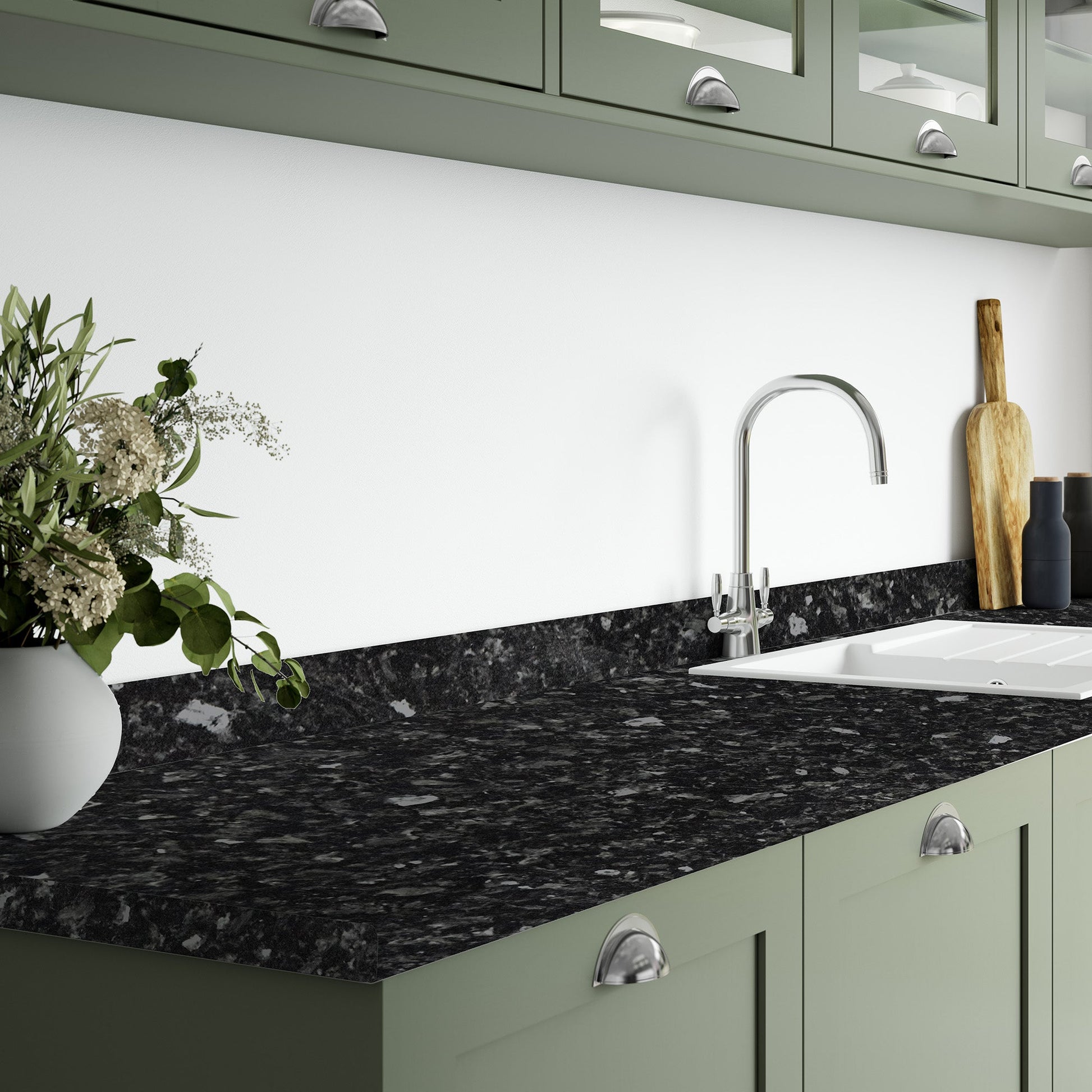 Experience the sleek elegance of a black slate finish with this laminate worktop, designed to mimic the natural beauty of stone. The square edge design offers a modern aesthetic, ideal for contemporary kitchens. Crafted from durable laminate, it ensures long-lasting performance while being easy to maintain. Its generous 3000mm length and 38mm thickness provide ample surface area and stability for various kitchen tasks. This worktop integrates seamlessly into any setting, enhancing your space with its sophisticated stone effect and practical features.